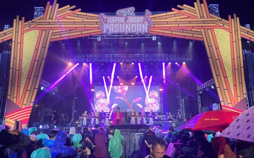 SPORTSJABAR-Hujan yang cukup deras tak menyurutkan ribuan warga dan masyarakat Kabupaten Pangandaran untuk menyaksikan acara spektakuler gelaran Coklat Kita bertajuk ” “Napak Jagat Pasundan Ngaruat Jagat” di Lapang Emerson Grand Pangandaran, Sabtu, 15 November 2025.